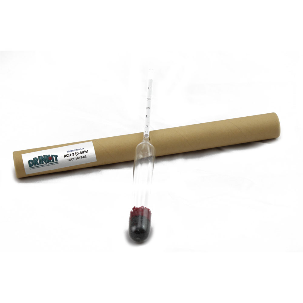 Спиртометр 0-40% объемного содержания спирта. Погрешность 1%.