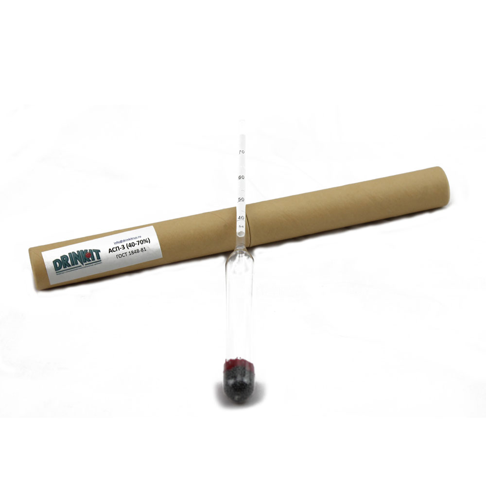 Спиртометр 40-70% объемного содержания спирта. Погрешность 1%.