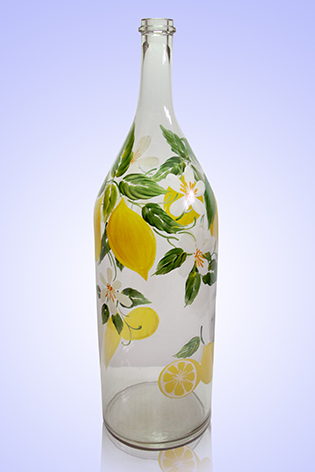 Оригинальная стеклянная бутылка "Русская четверть" объемом 3,074л. ручная роспись (лимон)
