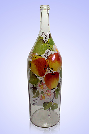 Оригинальная стеклянная бутылка "Русская четверть" объемом 3,074л. ручная роспись (Яблоки)