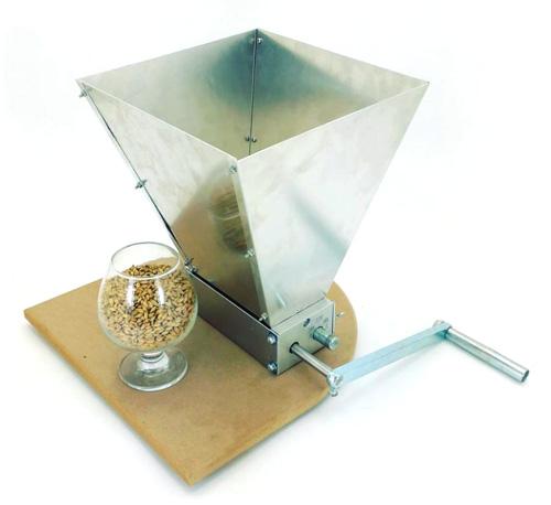 Эта двухвальцовая мельница специально разработана для помола солода. При прохождении зерна между вальцами ядро раздробляется, а шелуха остается нетронутой. Вальцы мельницы изготовлены из углеродистая конструкционная стали 45 марки. Расстояние между вальцами регулируется с обоих сторон. В комплект двухвальцовой дробилки входит загрузочный бункер, подставка и ручка. Вместо ручки можно установить электродрель/шуруповёрт.