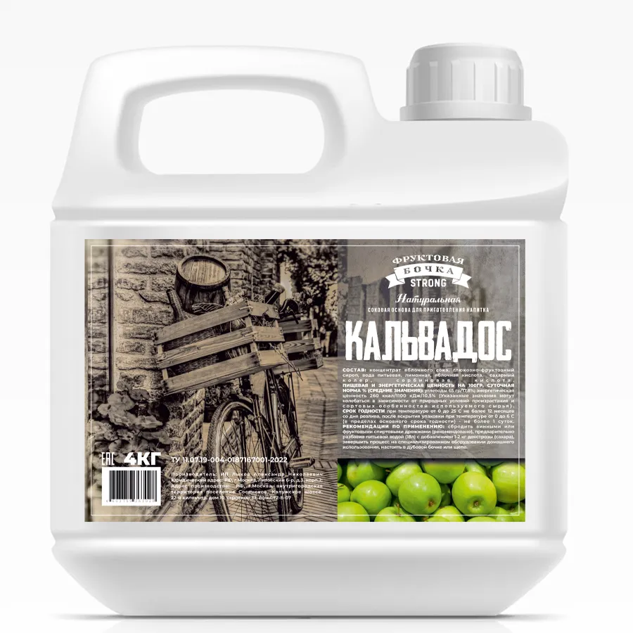 КАЛЬВАДОС Концентрат яблочного сока, Фруктовая бочка Strong 4кг
