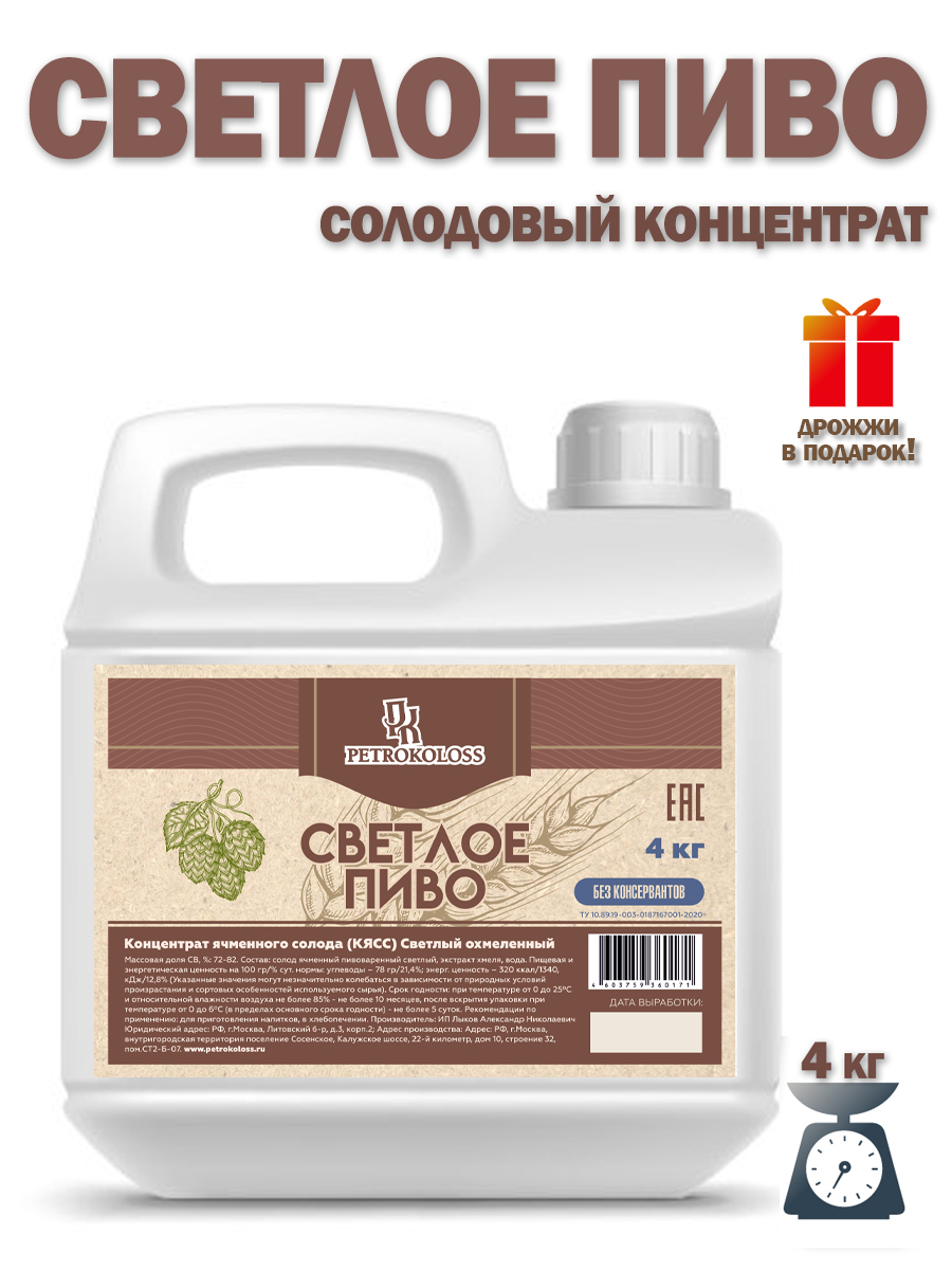 Концентрат ячменный солодовый светлый (КЯСС) охмеленный 4кг.