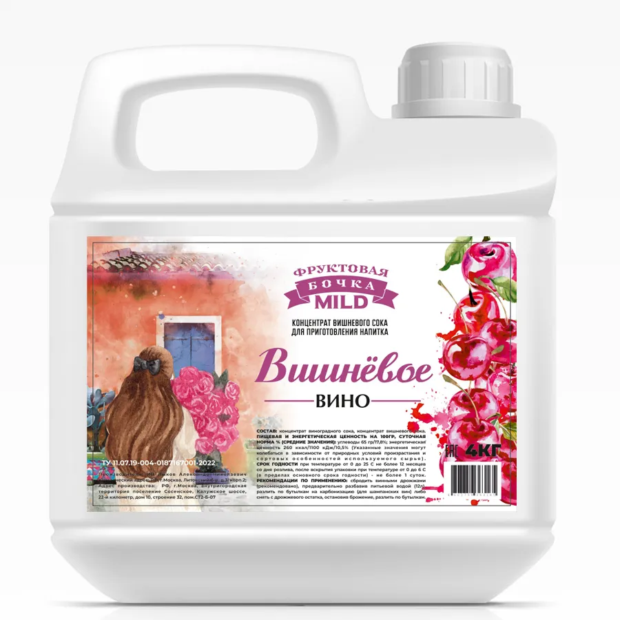 ВИШНЕВОЕ ВИНО концентрированный сок для приготовления вина, Фруктовая бочка MILD, 4кг