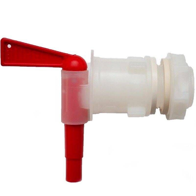 Кран пластиковый красный для розлива. Установочный диаметр 25 мм, 2 силиконовые прокладки в комплекте. Диаметр штуцера 10 мм. Штуцер для удобства крепления шлангов сделан елочкой.