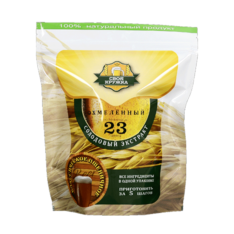 «Своя Кружка» Пшеничное классическое - светлый пшеничный классический сорт пива. Рассчитан на приготовление 20-23 литров. Небольшая хмелевая горечь, яркий мягкий аромат.