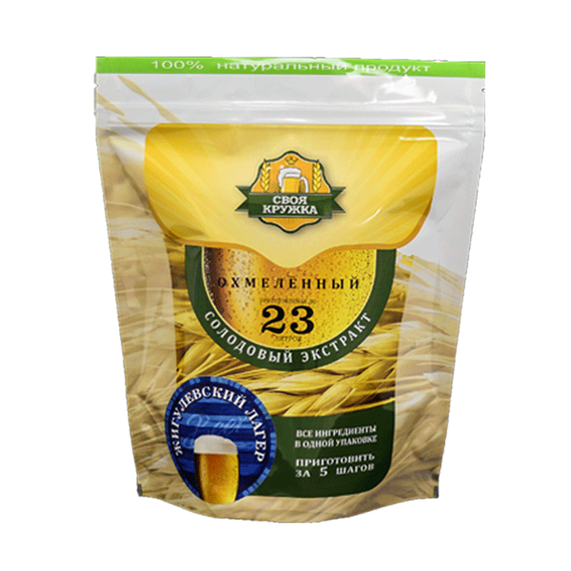 Охмеленный экстракт для приготовления пива "Своя кружка" Жигулевский Лагер - классический вкус легендарного светлого пива. Рекомендовано сбраживать при температуре ниже 18 градусов для достижения наилучшего вкуса. Идеально - 15 градусов Цельсия. Сочетание светлого и венского солода с ароматным хмелем придает пиву яркий соломенный цвет, умеренную хмелевую горечь и приятный аромат. Для увеличения хмелевого аромата в комплекте прилагается натуральный хмель.