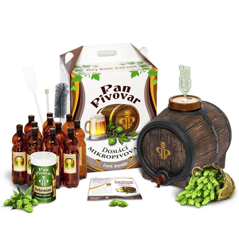 Новинка в домашнем пивоварении и выборе подарка для себя и друзей - чешская домашняя пивоварня Пан Пивовар. Неоспоримое соотношение цена/качество/внешний вид - не оставит равнодушным любителей пенного напитка. Комплект пивоварни рассчитан на приготовление 18-23 литров великолепного живого пива. В наборе - все необходимое для первой варки. Оригинальные пивные солодовые концентраты Пан Пивовар сварены на заводе Чехии по лучшим старейшим рецептам. Внешний вид самой пивоварни, ее комплектующих, а также подарочной красочной упаковки - приятное дополнение к премиальному качеству чешского пива.