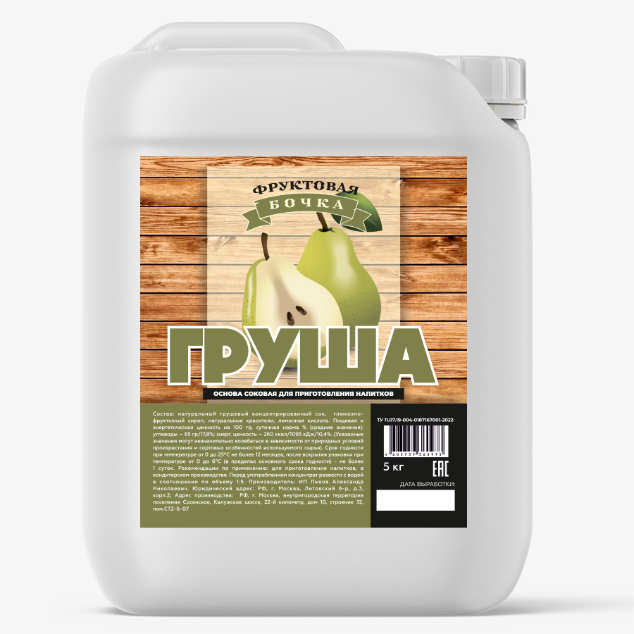 Сок грушевый концентрированный "Фруктовая Бочка" 5 кг