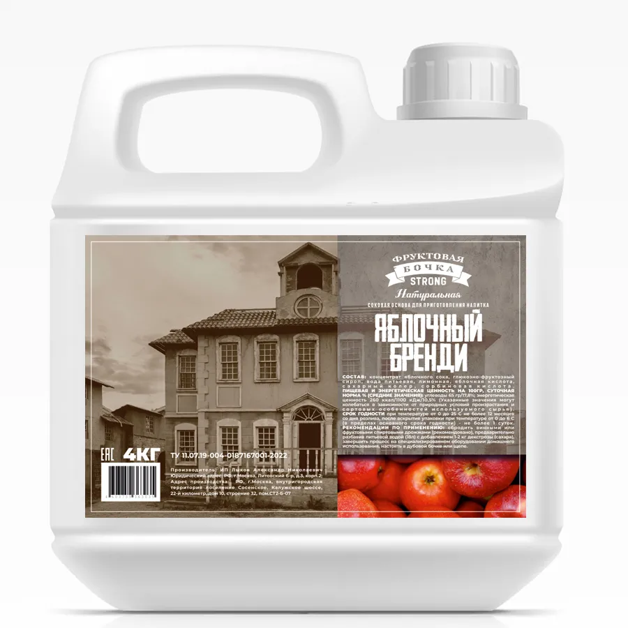 ЯБЛОЧНЫЙ БРЕНДИ Концентрат яблочного сока, Фруктовая бочка Strong, 4кг