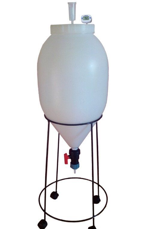 - Устойчивая металлическая подставка с роликовыми колесами - удобна для перемещения ферментера